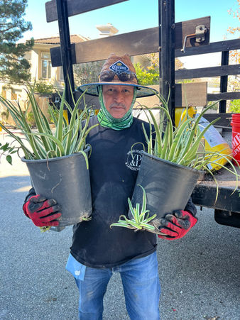 The new plants are Spanish Lavender, asparagus fern, statice, and casa blue dianella. They were selected for their hardy drought-tolerant qualities.